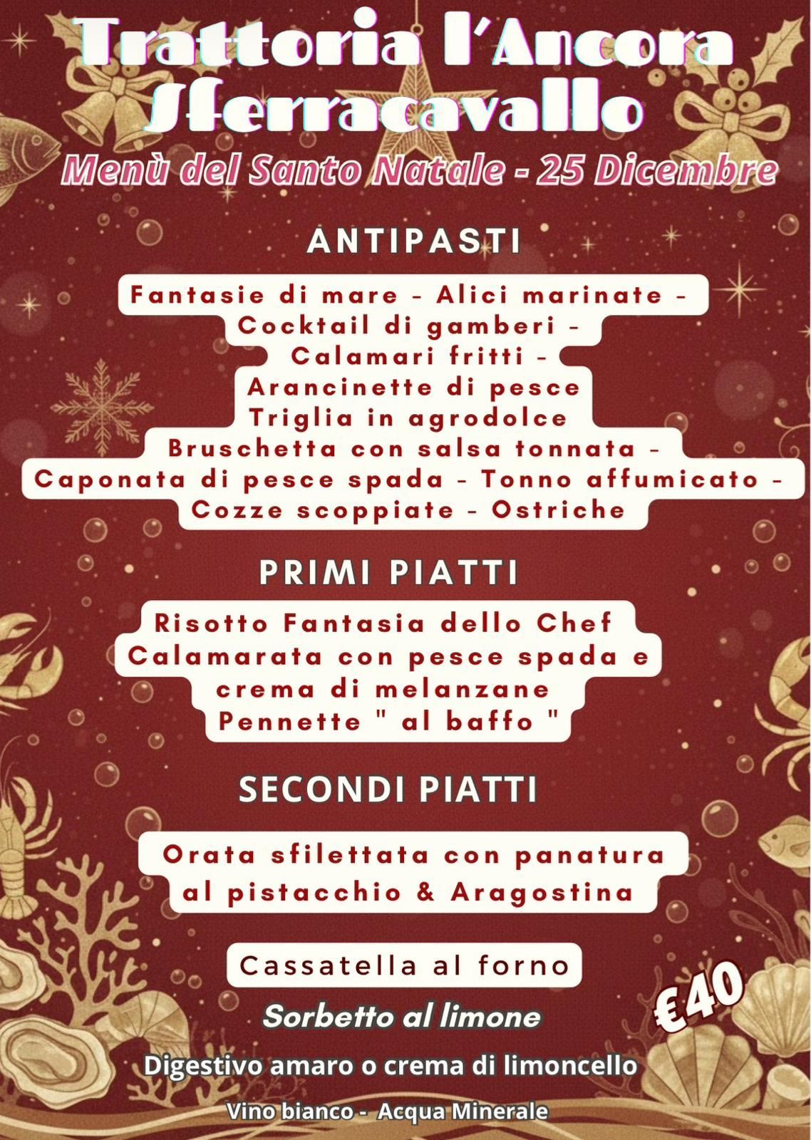 Menù del giorno e menù delle Festività Natalizie